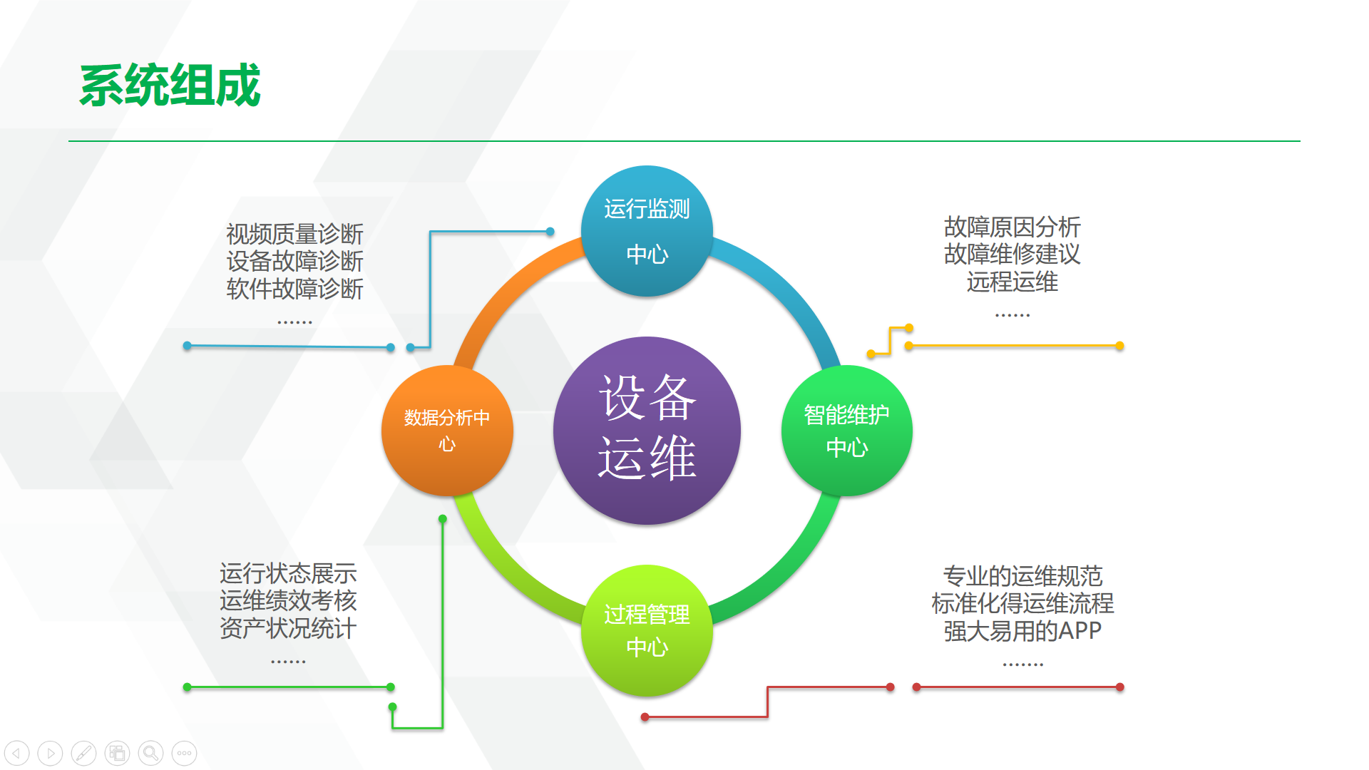 依托专业故障分析能力,系统可根据故障报警自动分类,输出精准的故障原因研判与可落地的维修建议;并通过规范细致的运维支撑流程,将运维操作标准化、可视化,既为运维服务提供高效执行依据,也为运维过程跟踪、绩效考核提供数据支撑,最终达到降低运维成本、提升系统稳定性与业务连续性的目标。